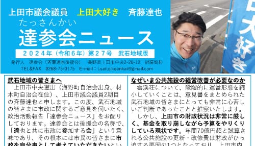 挑戦する上田へ!選択と集中で、上田を再興する - 上田市議会議員さいとう達也 -