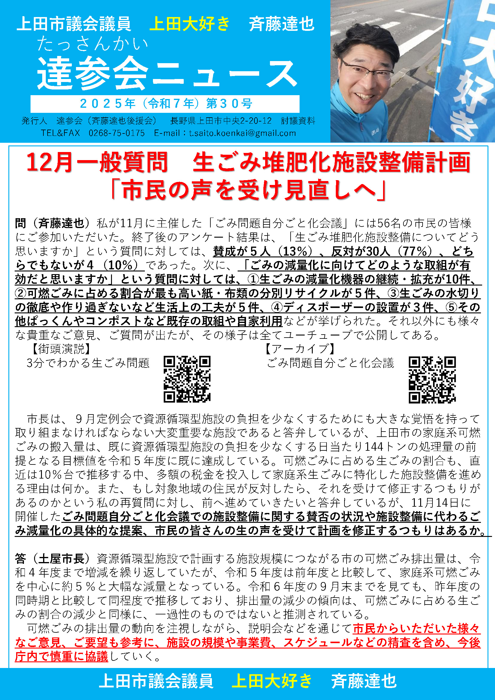 挑戦する上田へ!選択と集中で、上田を再興する - 上田市議会議員さいとう達也 -