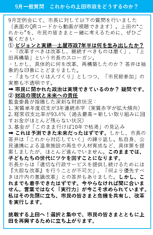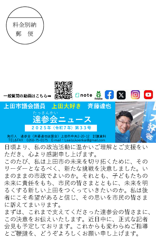 挑戦する上田へ!選択と集中で、上田を再興する - 上田市議会議員さいとう達也 -